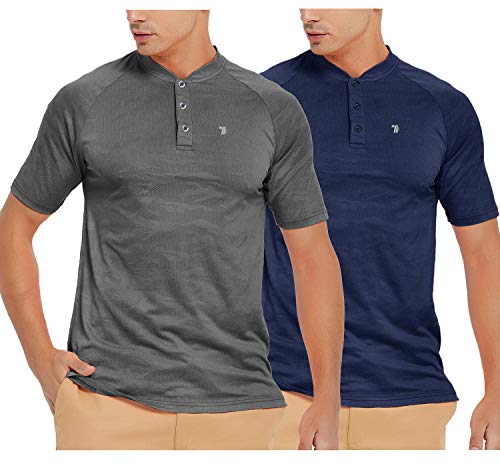 CLASSIC AND FASHION -- Regular outdoor sports short-sleeved version, V-neck with 3 buttons, easy to put on and take off. Unique hidden pattern printing can look more charming in sports. NEW BRAND -- Lightweight materials are more suitable for your body. A must-have men's top for summer. Machine washable, hand washable, Non-pilling, Resists fading. VARIOUS OCCASIONS -- Regular version of this TBMPOY Henley shirt is suitable for everyday casual wear, sports, work, vacation, golf, beach, hiking, football, etc. It is also the perfect gift for family and friends.